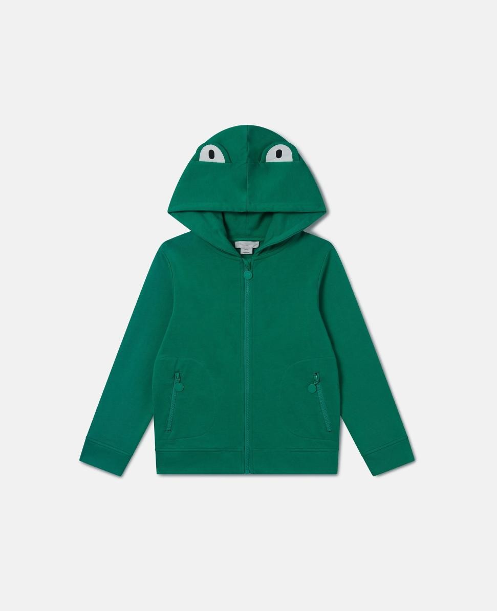 سويت شيرت ستيلا مكارتني بغطاء رأس وسحّاب وطبعة ضفدع، أخضر | تيشيرتات وسويت شيرتات للأطفال