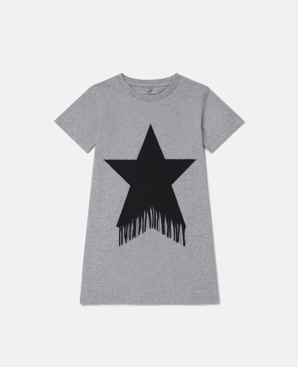 فستان ستيلا مكارتني الرمادي بنقشة النجوم والجرافيك وشراشيب | فساتين أطفال وجمبسوت