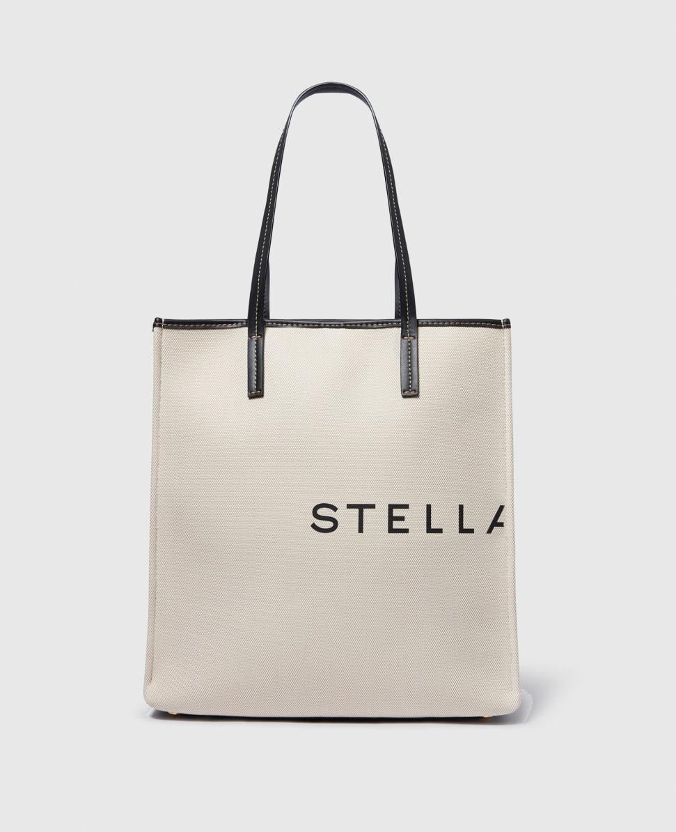 حقيبة توت كبيرة من قماش ستيلا مكارتني SMC بلون البيج والأسود | حقائب توت نسائية