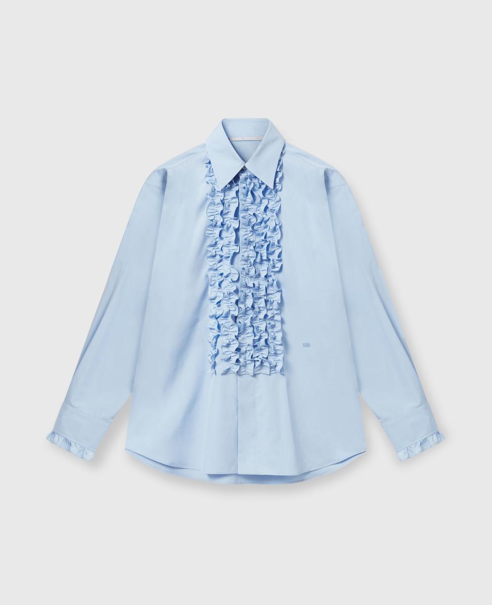 Stella Mccartney Ruffled Panel Oxford Shirt Sky Blue | Women Shirts And Tops