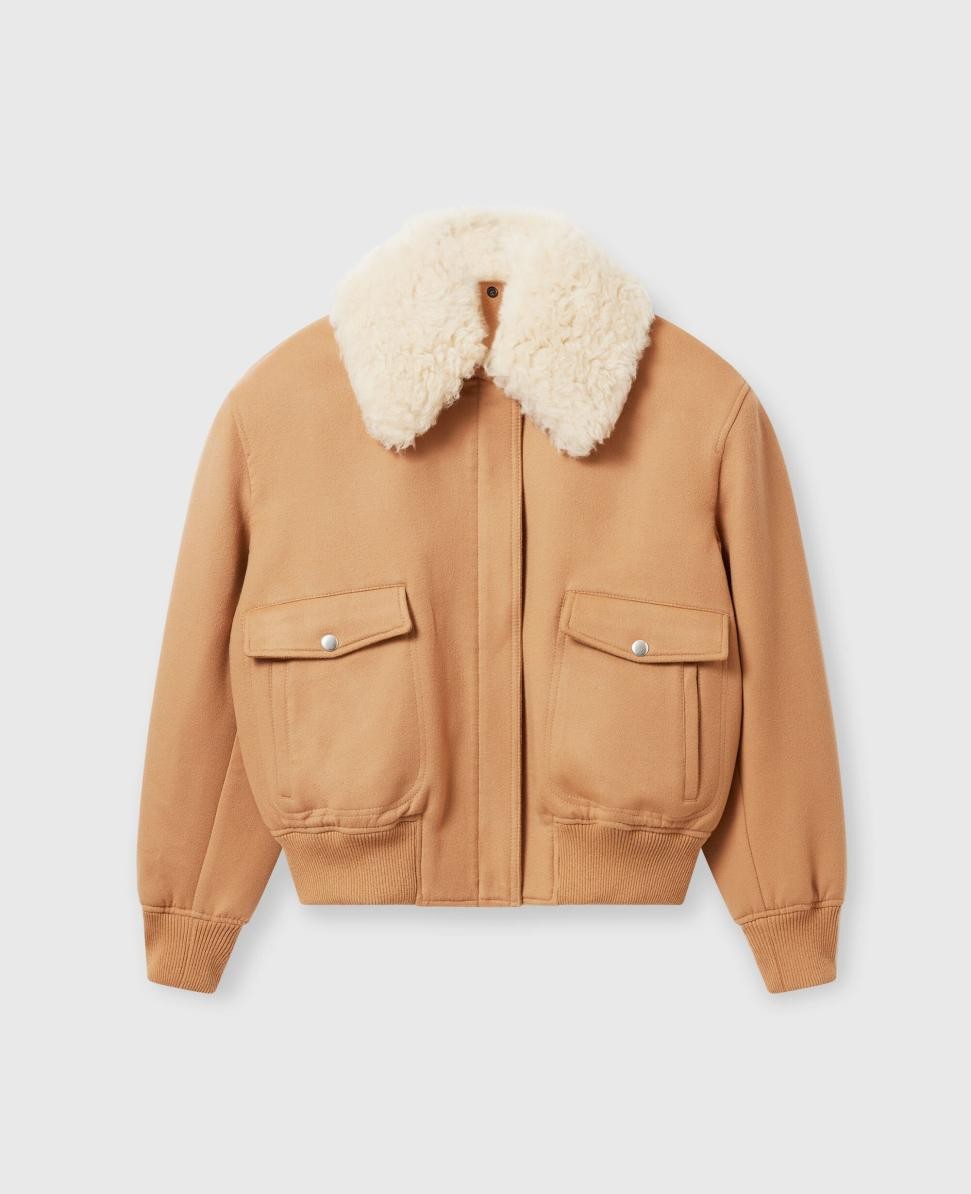 Stella Mccartney Plush Teddy Bomber Jacket Camel | Women Coats And Jackets