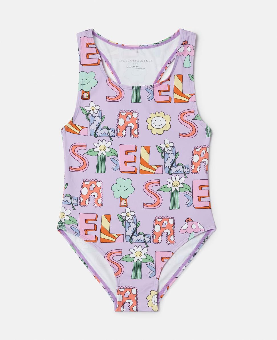 Stella McCartney Badeanzug mit Schriftzug-Print, Lila | Kinderbademode