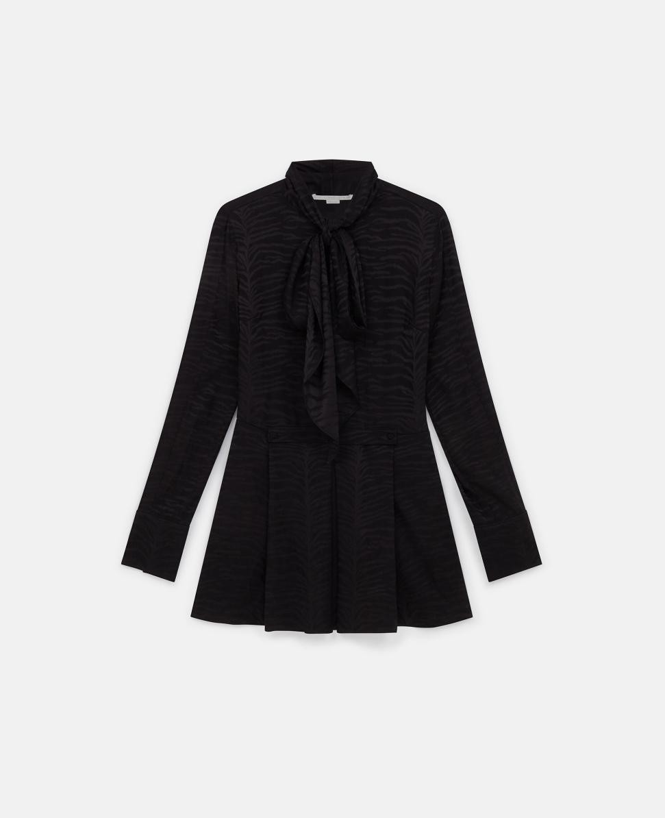 Stella McCartney Midikleid mit Tigerprint und Bindekragen, Schwarz | Damenkleider