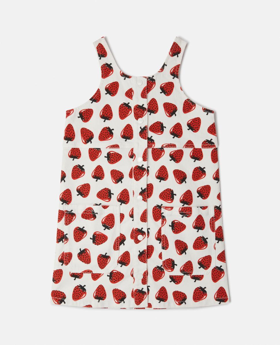 Ärmelloses Kleid mit Erdbeermuster von Stella McCartney, Creme/Rot | Kinderkleider & Jumpsuits
