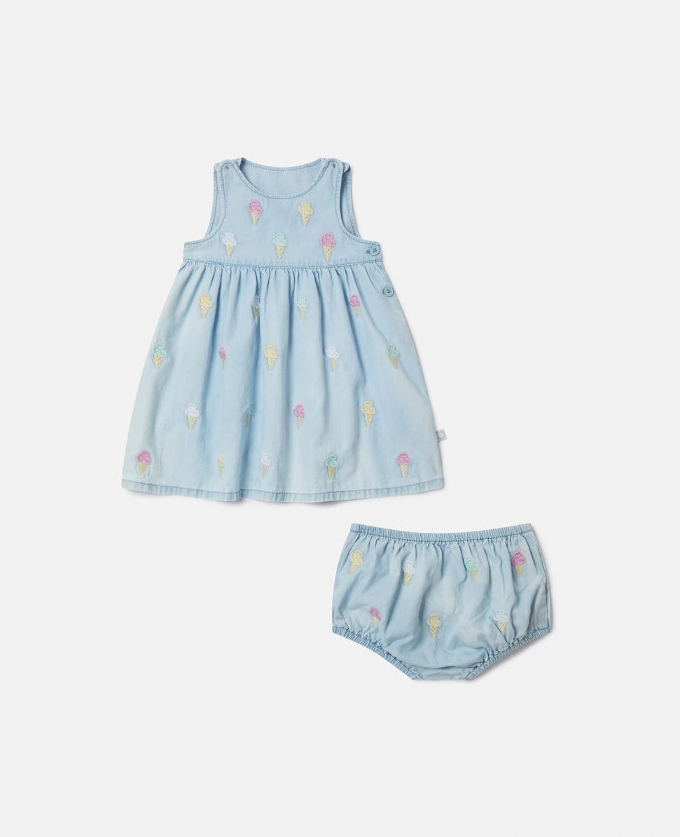 Vestido y braguita con bordado de helado Stella McCartney, azul | Vestidos y monos para niños