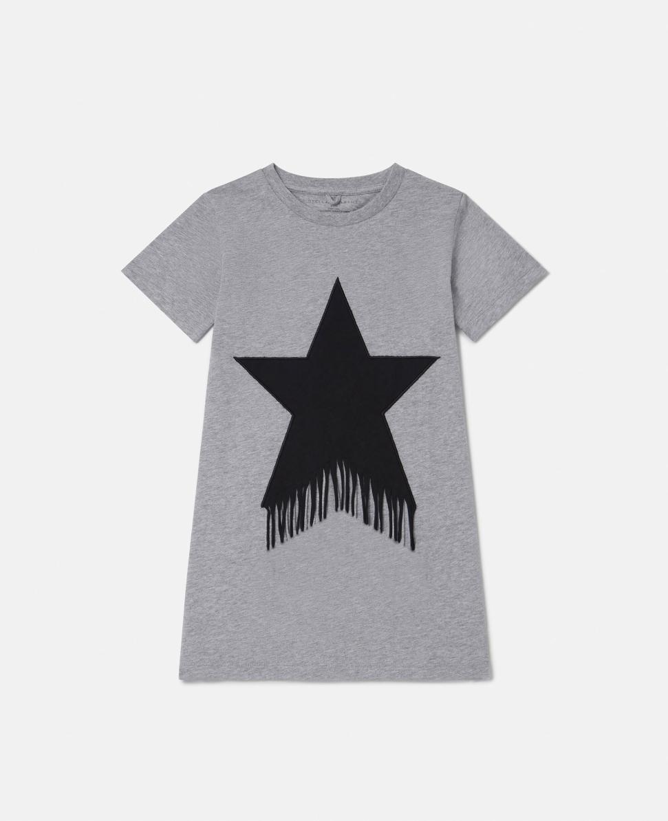 Vestido camiseta gris con flecos y estampado de estrellas de Stella McCartney | Vestidos y monos para niños