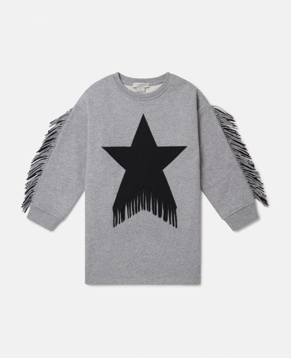 Vestido gris con flecos y estampado de estrellas de Stella McCartney | Vestidos y monos para niños