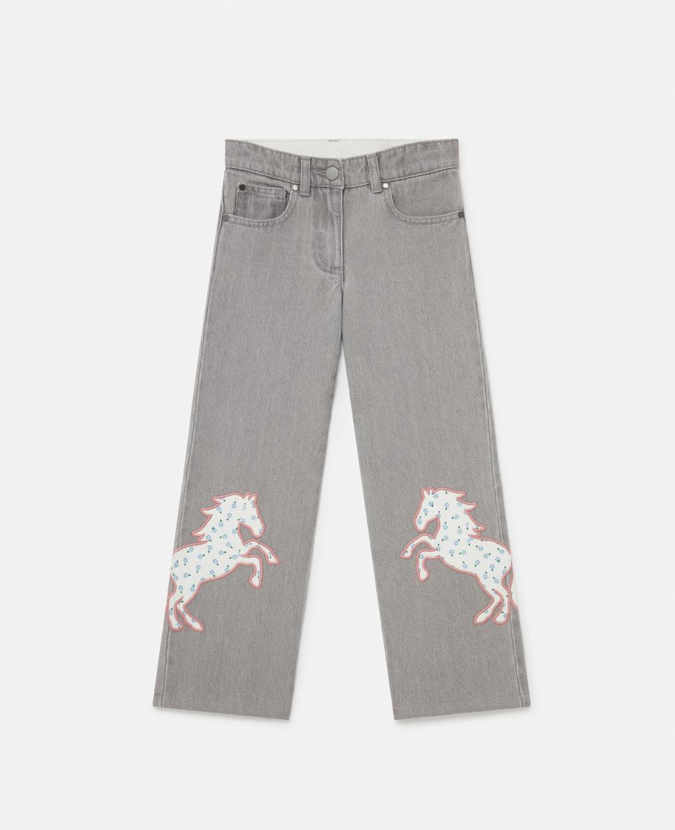 Stella McCartney Horse Appliqué Denim -farkut harmaat | Lasten housut ja shortsit