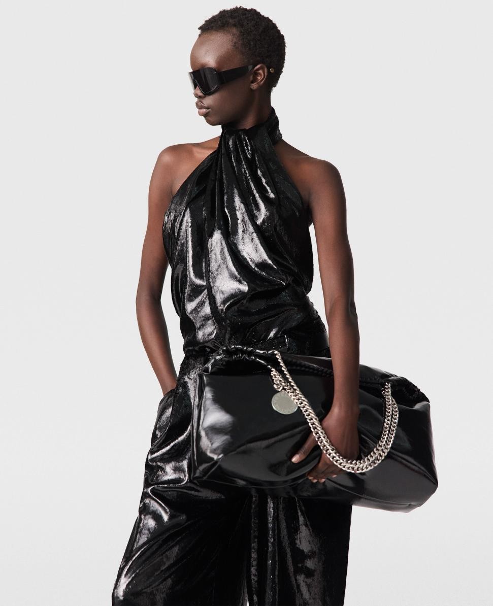 Top dos nu Stella McCartney en velours noir à empiècements | Chemises et hauts pour femmes