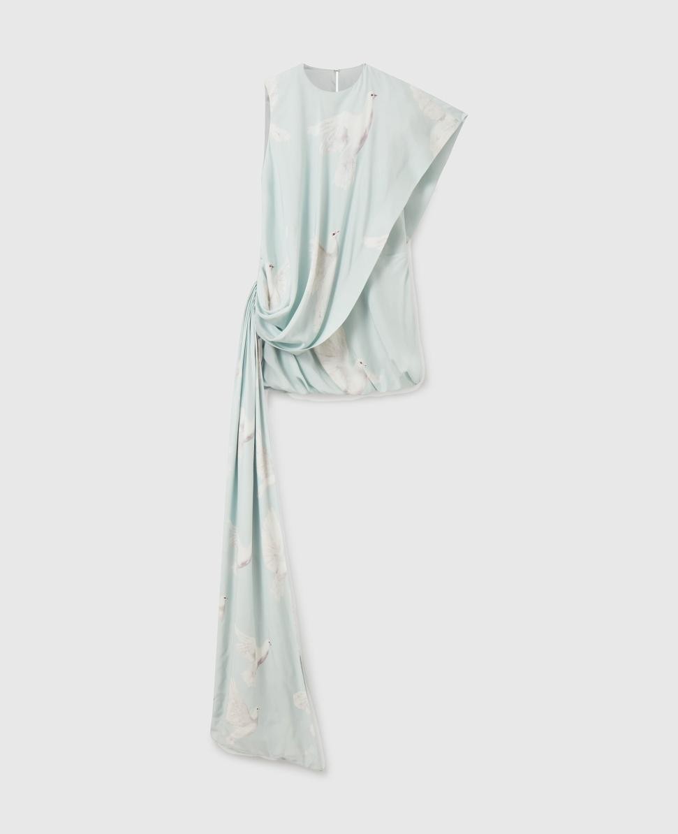 Robe courte Stella McCartney bleue à imprimé colombe et traîne nouée | Robes pour femmes