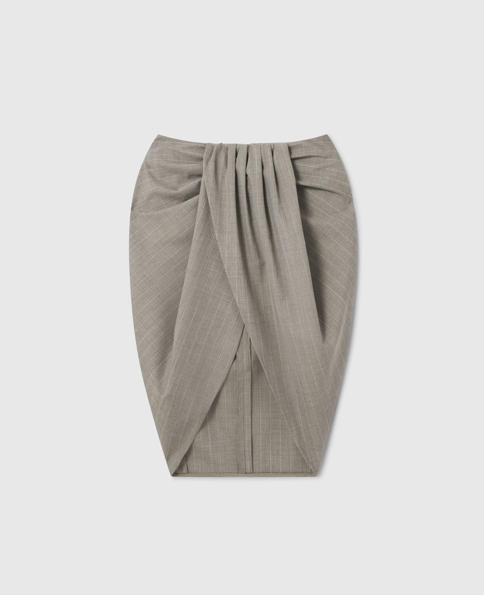 Jupe midi grise à fines rayures et fronces Stella McCartney | Jupes pour femmes