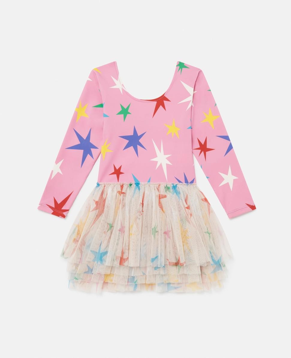 Προϊόν K03897PK08215354 Μπορείτε πάντα να βασίζεστε στην Stella McCartney Kids για παιχνιδιάρικα σχέδια και prints. Εμπνευσμένο από την τελευταία συλλογή βιώσιμων πολυτελών παιδικών ενδυμάτων της Stella, αυτό το φόρεμα είναι φτιαγμένο από ελαστική ύφανση με τυπωμένα πολύχρωμα αστέρια. Σχεδιασμένο από μια πλισέ φούστα από τούλι σε στρώσεις, είναι σίγουρο ότι θα γίνει το νέο αγαπημένο του μικρού σας αγαπημένου.