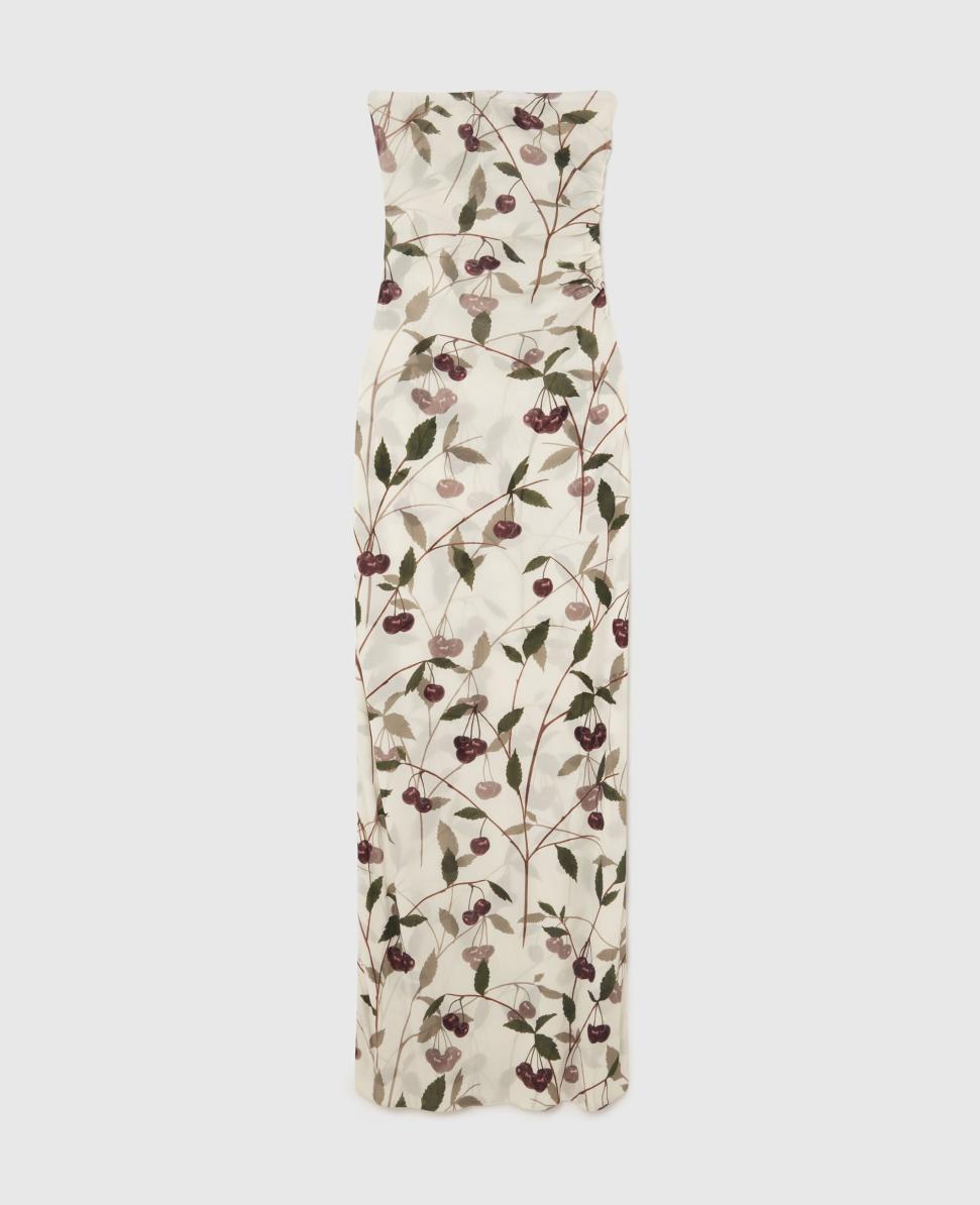 Midi haljina bez naramenica s printom trešnje Stella McCartney, krem boje | Ženske haljine