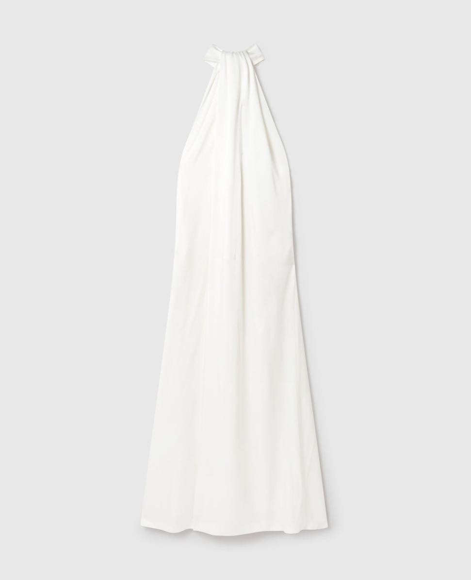 Item 6A05233FU3029200 Spun from lustrous, forest-friendly satin, this silky evening dress begins with a wrapped halterneck panel. Cascading straight past the hips to a floor-length hem, the maxi is thoughtfully stitched with slip pockets on either side for classic Stella McCartney ease.