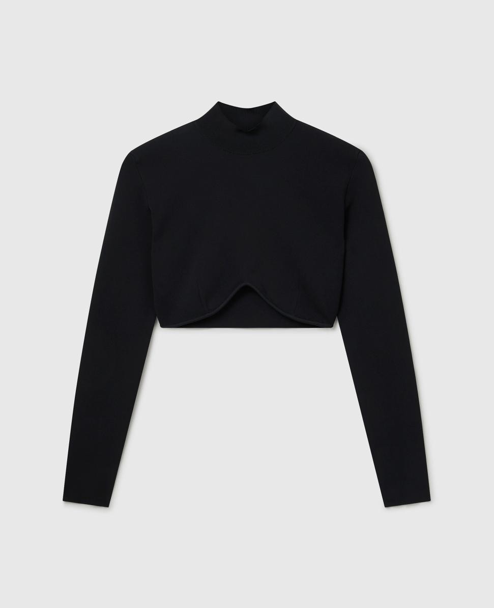 Item 6K09393S25431000 Fashion illusion and innovation celebrate the feminine form with this sculptural, long-sleeve knit top, spun from forest-friendly viscose yarn to an ultra-cropped, bustier-inspired silhouette to accentuate the body’s shape – inspired by the iconic Stella McCartney Miracle Dress. Pair this piece with the coordinating balloon trousers.