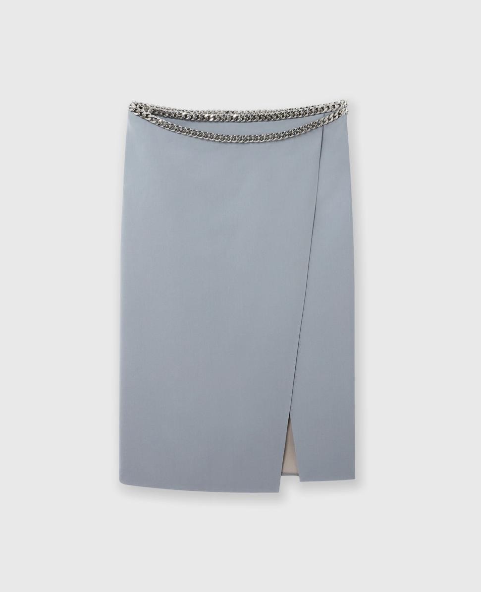 Item 6301293CU7049940 Stella McCartney studied on Savile Row, tutored by the legendary Edward Sexton – evidenced by this expertly tailored skirt. Fashioned from RWS-certified wool, this asymmetric midi is cut to a mid-rise waist embellished with an iconic Falabella chain skimming the hips. Pair it with the coordinating blazer.