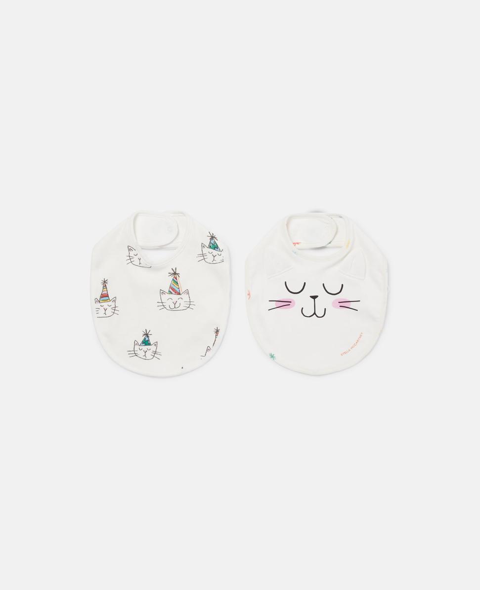 Artikel K04752PK10759066U De Stella Kids lente/zomercollectie 2025 laat de volgende generatie op speelse wijze zien dat dieren vrienden zijn, geen mode. Het grappige, kattengezichtje van het seizoen is gedrukt op deze zachte slabbers van biologisch katoen.