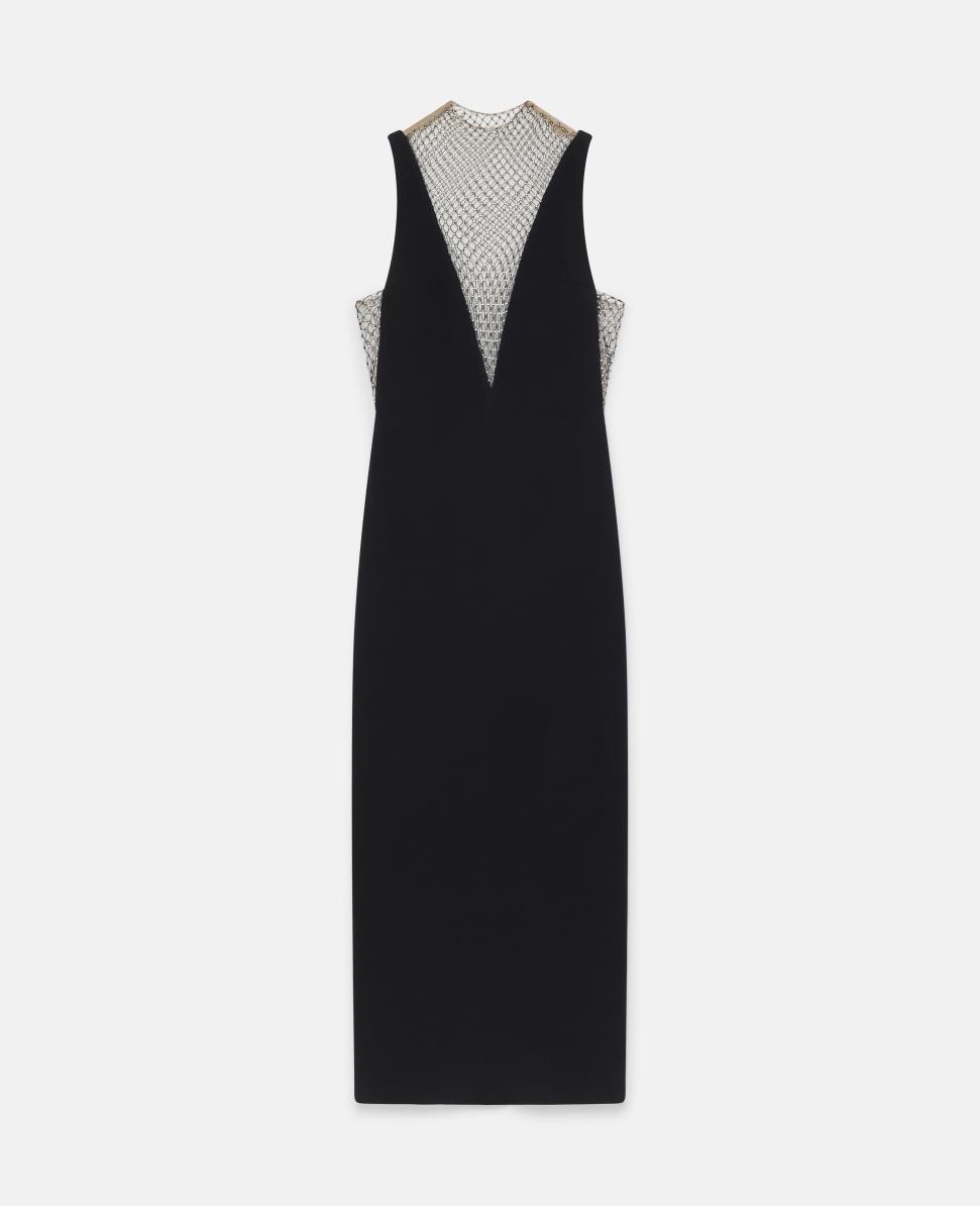 Stella Mccartney Crystal Mesh Deep V Midi-jurk Midnight Black | Damesjurken