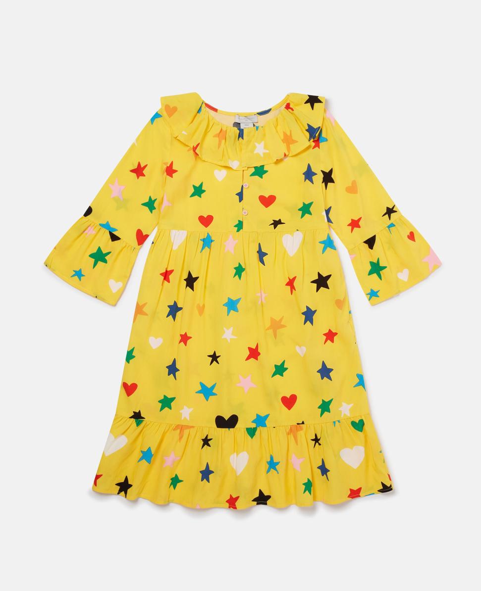 Stella Mccartney Star Print Lange Mouw Jurk Geel | Kinderjurken & Jumpsuits