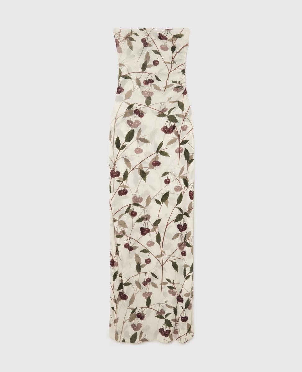 Stella McCartney Kirsebærprint Mesh Stroppeløs Midikjole Kremfarget | Damekjoler