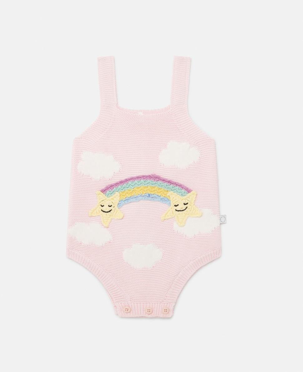 Item K04134PK09085702 Natureza, estrelas e arco-íris – três ingredientes icônicos da mais recente coleção infantil de Stella McCartney. Tricotado com uma mistura suntuosamente macia de algodão orgânico, este macacão encantador é adornado com duas estrelas cadentes e um arco-íris bordados na frente.