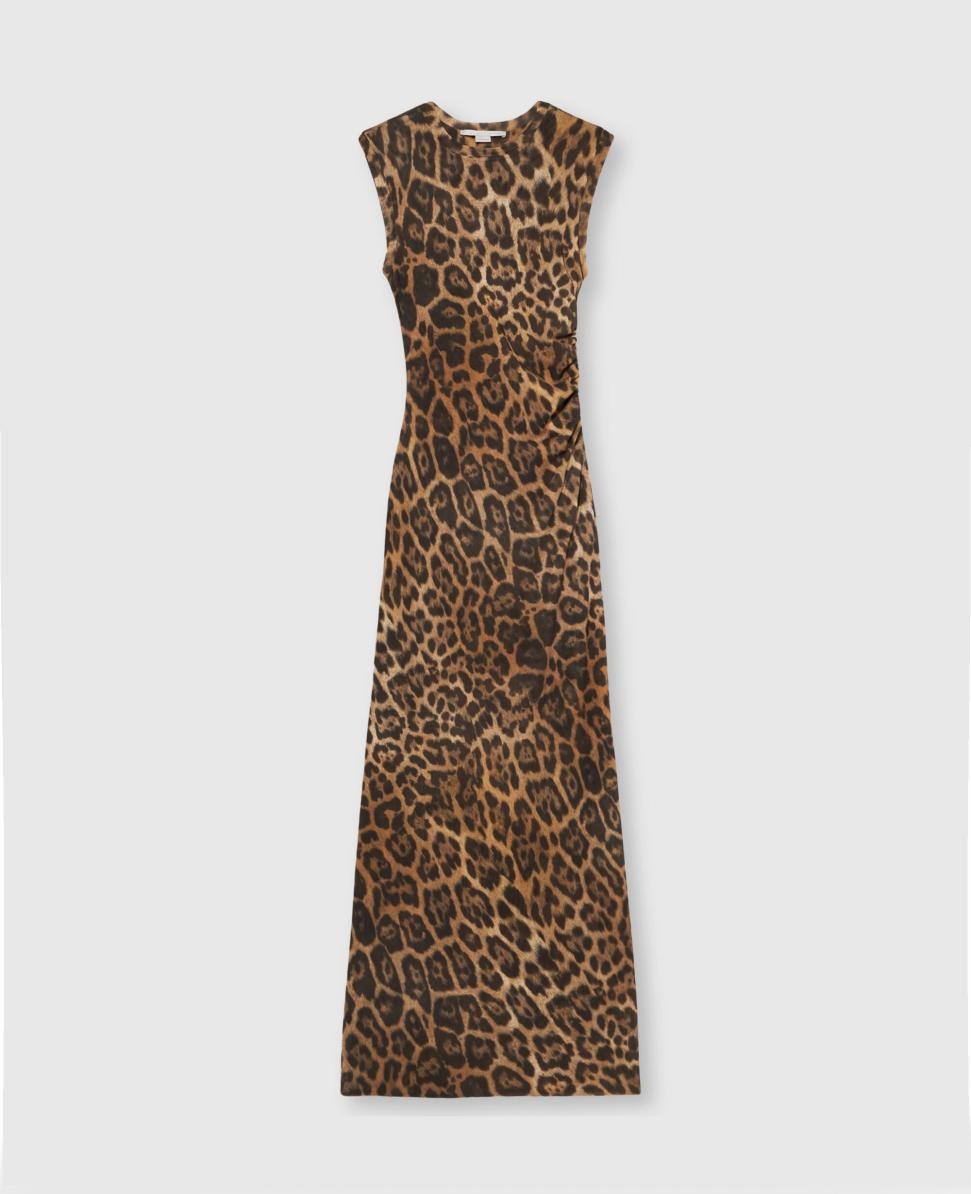 Item 6J02943SPZ642203 Celebrar a beleza dos animais sem prejudicá-los é icônico para Stella McCartney. Parte da nossa coleção Primavera 2025, este vestido maxi fluido e sem mangas é feito à mão em malha elástica com uma estampa de leopardo marcante – com gola redonda.