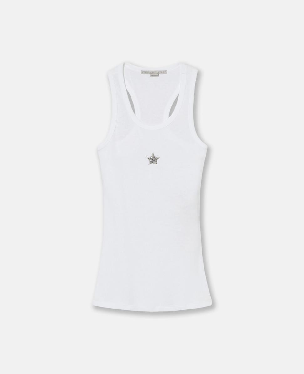 Item 6J02913SPZ119000 Estrelas estão no DNA do design de Stella McCartney. Você encontrará uma estrela cravejada de cristais brilhantes sem chumbo, bem no centro desta regata minimalista de algodão branco. Combine-a com a icônica calça jeans de cintura baixa e recortes para um look estrelado da cabeça aos pés.