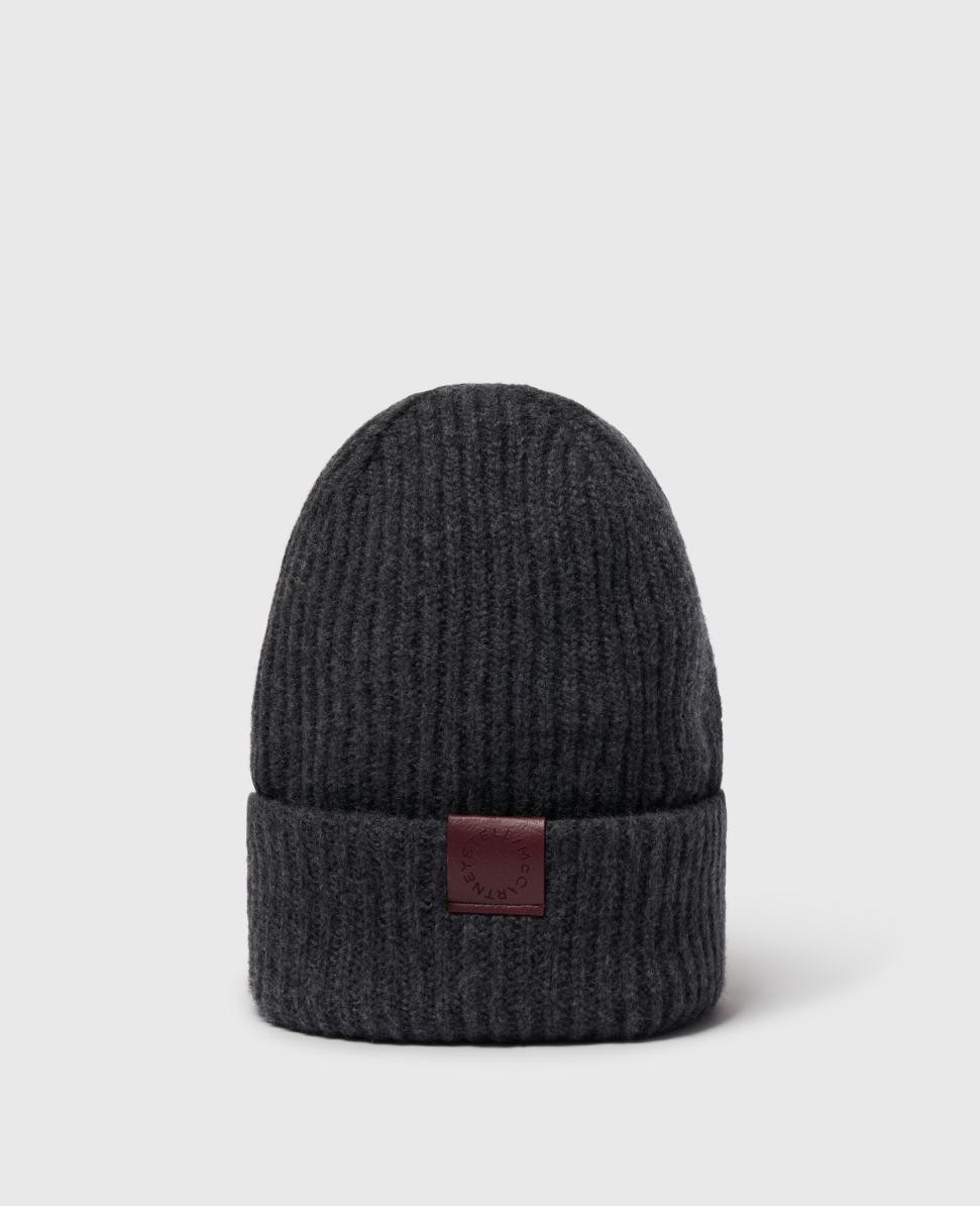 Gorro Stella McCartney com Logo Canelado Cinza | Chapéus e Cachecóis Femininos