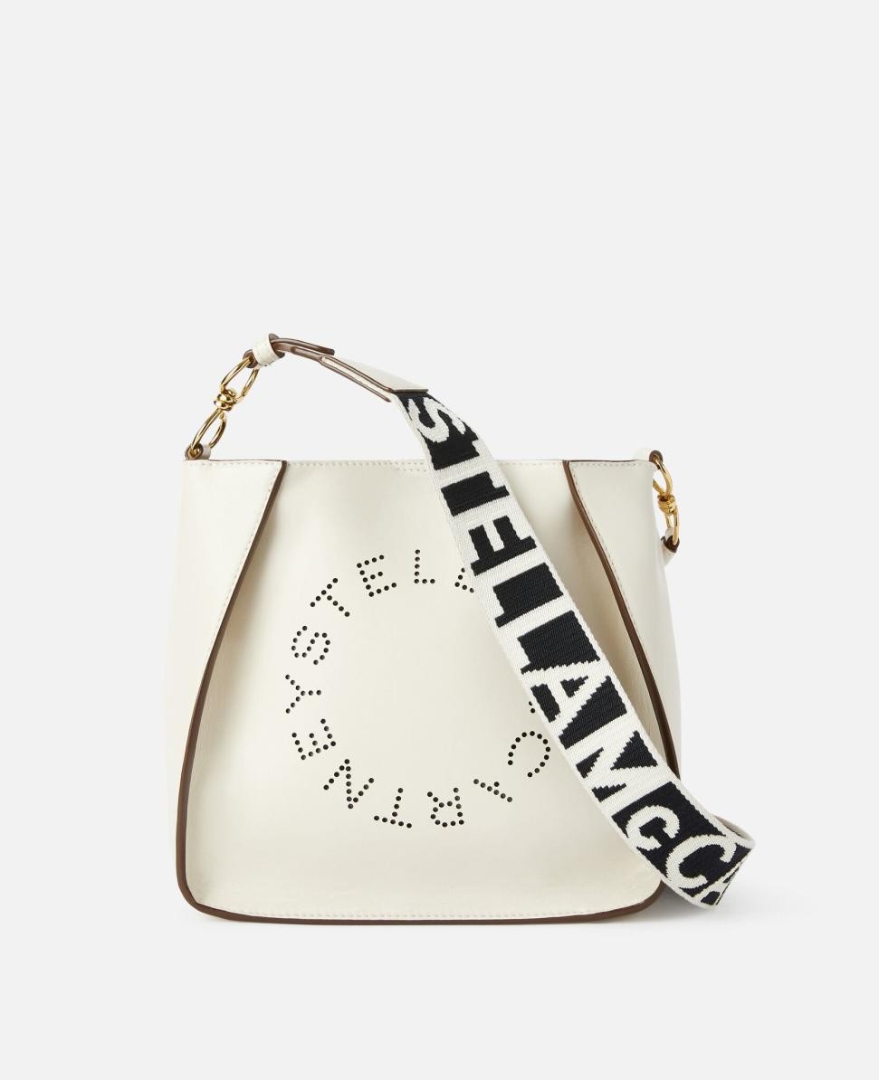 Articol 700073W85429000U Ridicați nivelul zilnic cu această geantă de umăr Logo, realizată cu grijă, în alb pur. Geanta de umăr este fabricată din Alter Mat, o alternativă vegană luxoasă la pielea animală, cu logo-ul circular Stella McCartney în față și o curea de umăr din pânză pentru un stil urban și utilitar.