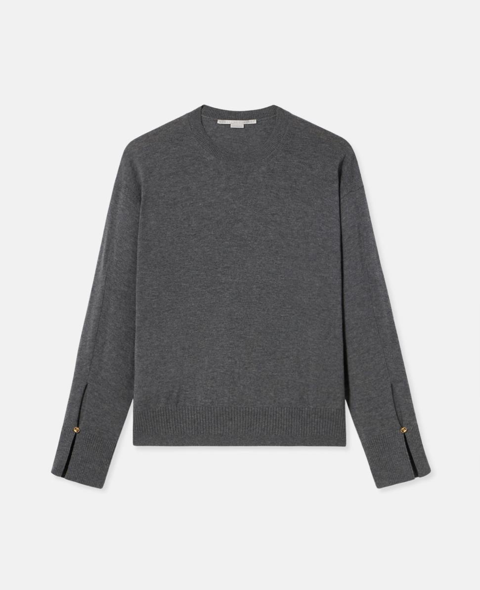 Artikel 6K04213S24151202 Bygg upp en grundläggande garderob av ikoniska plagg med denna rundhalsade tröja från Stella McCartney i mellangrått. Tröjan är medvetet tillverkad av RWS merinoull i finstickning med slitsar i ärmsluten som ger en Stella-twist.