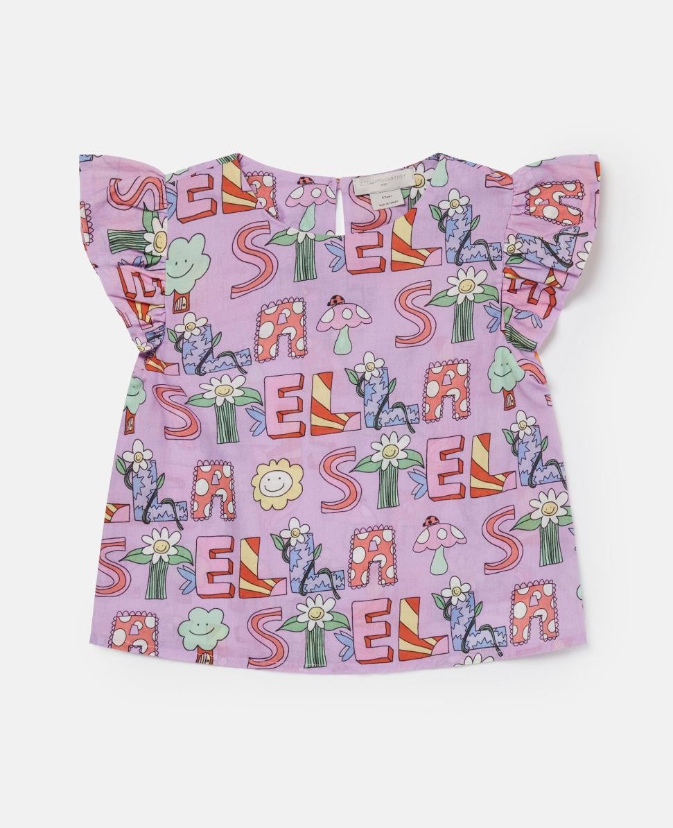 Stella Mccartney Stella Woodland Lettering Pleated Cap-sleeved T-shirt Lila | Barn T-shirts Och Toppar