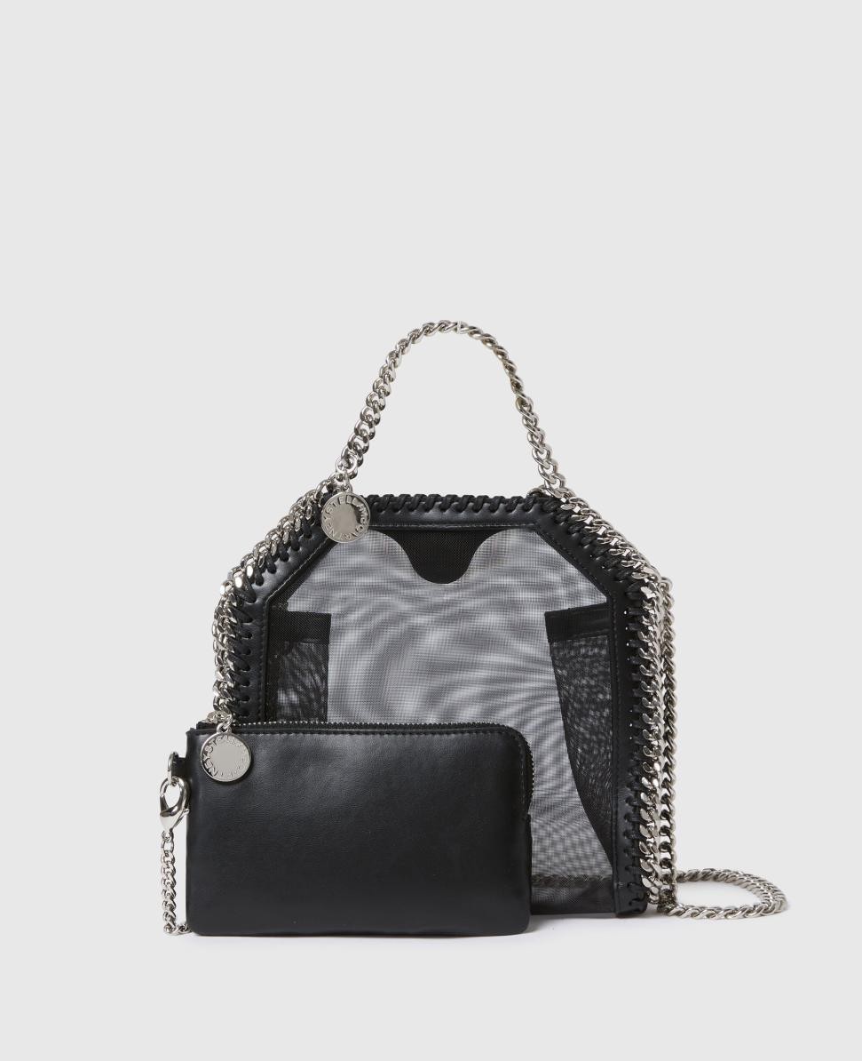 Item 7B0142WP05381000U This Falabella tote bag offers a fresh take on our forever icon, handcrafted with sheer mesh panels in recycled materials. Characterized by its hand-laced, heavyweight diamond-cut chain outline and handles, its interior boasts enough room for your daily necessities with a detachable zipper wallet inside for smaller essentials.