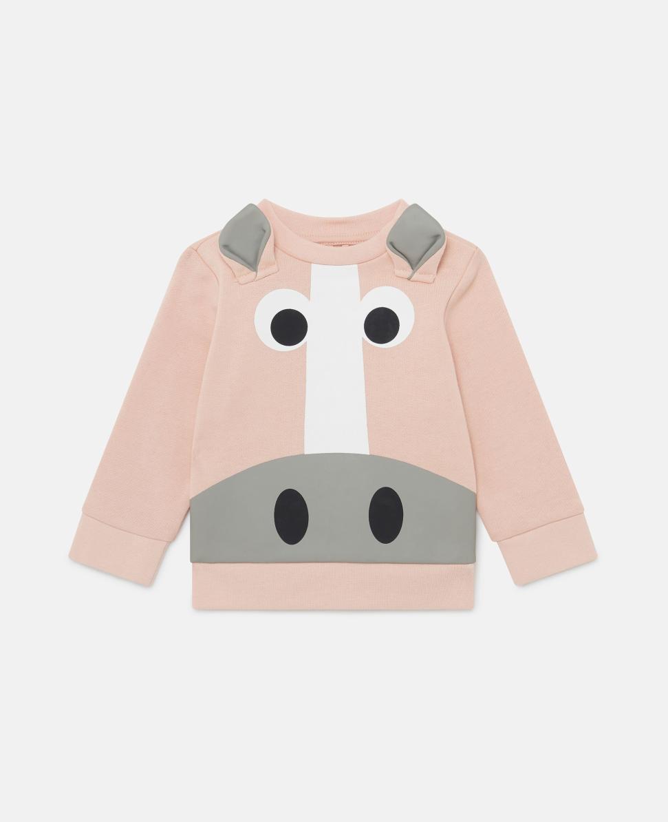 Item K04163PK00958430 Taking your little one from playtime to the paddock, this doting sweatshirt looks to Stella McCartney’s favorite animal for inspiration. Spun from soft organic cotton fleece, it’s printed with horsey facial features, stitched with pricked ears and cut with ribbed trims. Pair it with the coordinating sweatpants.