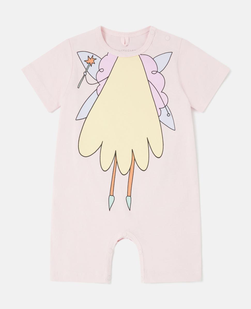 Ürün K04300PK00545604 2025 İlkbahar Yaz koleksiyonu için Stella McCartney Kids, %96 bilinçli malzemelerden üretilen bir koleksiyonda periler, kurbağalar ve eğlenceli orman dostlarıyla ormanların büyüsüne ve yaramazlığına doğru bir yolculuğa çıkıyor. Bu yuvarlak yakalı tulum, yumuşak organik pamuklu jarse kumaştan üretilmiştir.