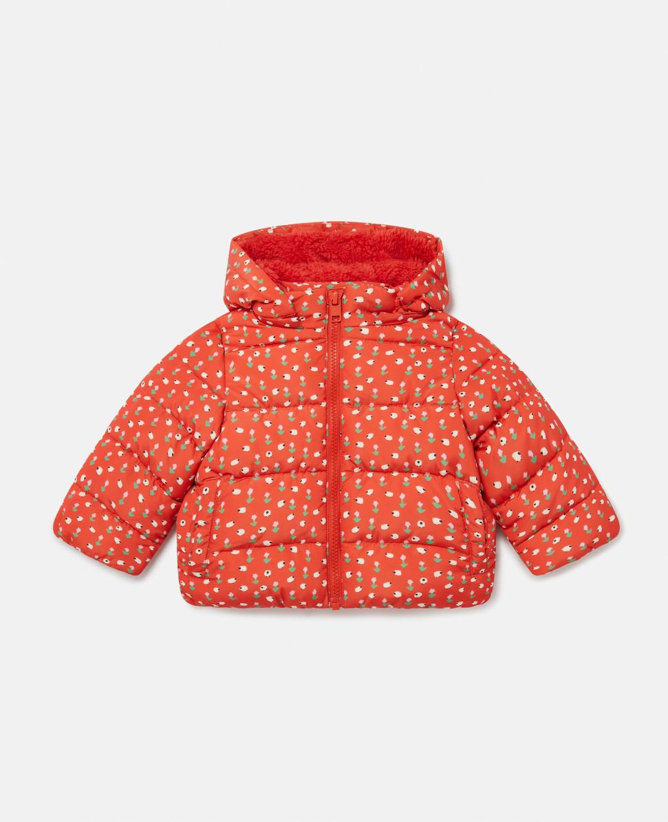 Stella Mccartney Çiçek Desenli Kapüşonlu Şişme Mont Kırmızı ve Beyaz | Çocuk Bebek Kız