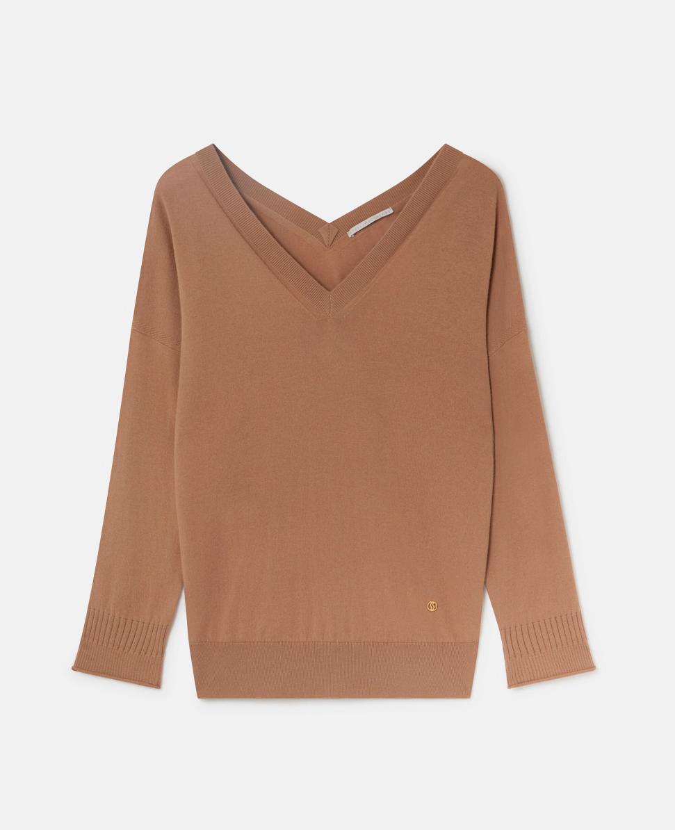 Stella Mccartney V Yaka Uzun Kollu Kazak Kahverengi Bej | Kadın Örgüleri