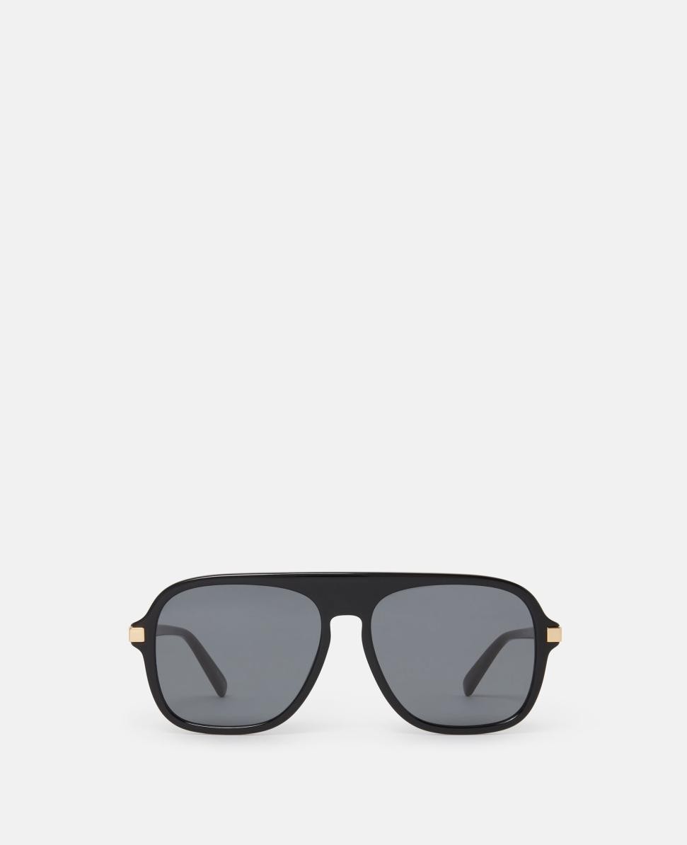 Item 910070PE00011000U Cut from bio-acetate to a sleek flat-bridge silhouette and fitted with structured square lenses, these Stella McCartney frames provide a modern interpretation of the timeless pilot shape for Winter 2024. Color: Glossy black and goldStyle: Straight-Edge Lens: Solid graySize: 57cm Net Weight: 50gLens Category: 3 Lens Transmittance: 16.53%Gold metal stripe with Stella McCartney moniker engraved on armsAll of our eyewear comes with a protective vegan case in embossed croc, recycled polyester cleaning cloth and leaflet crafted from recycled paper.